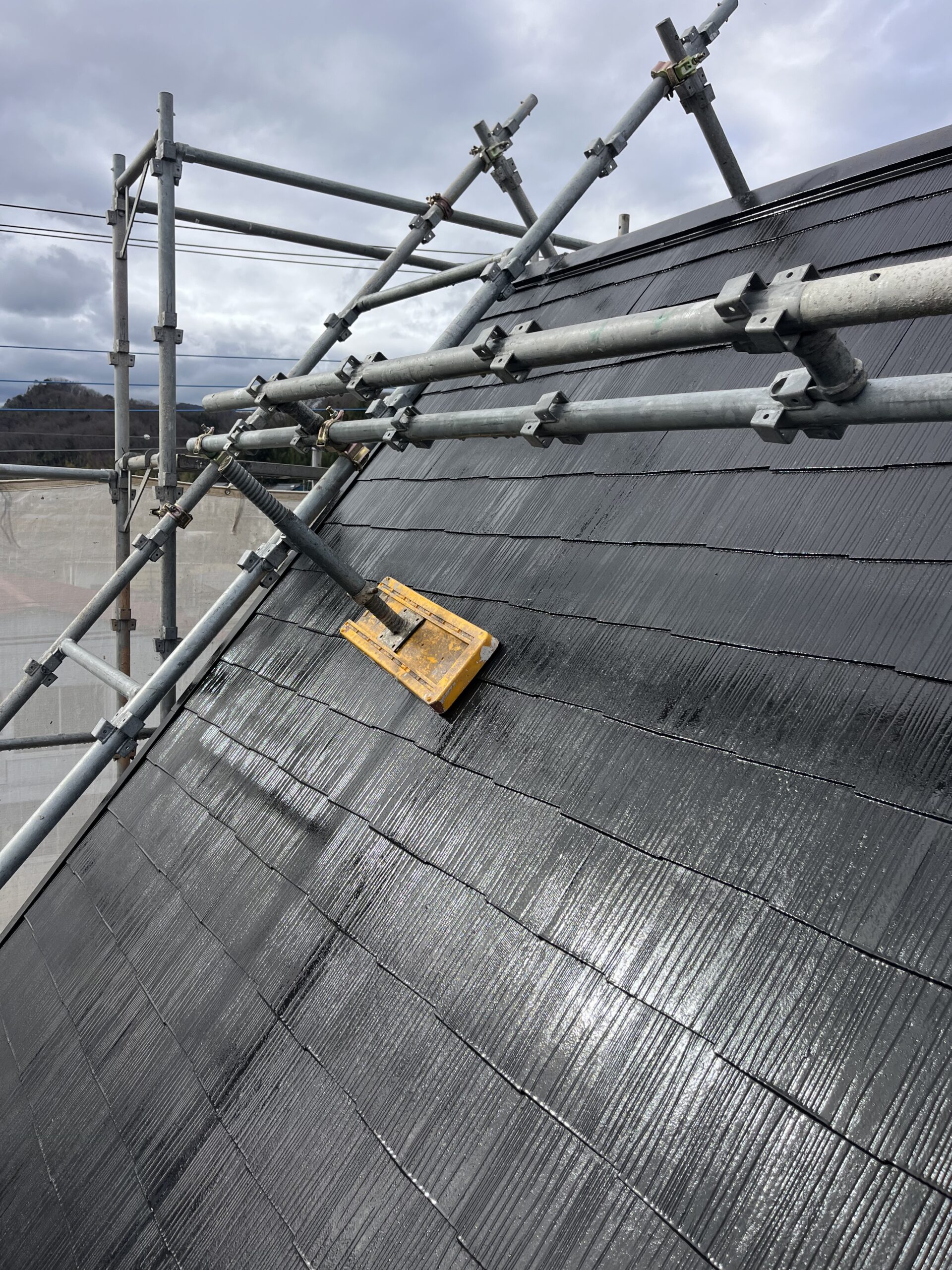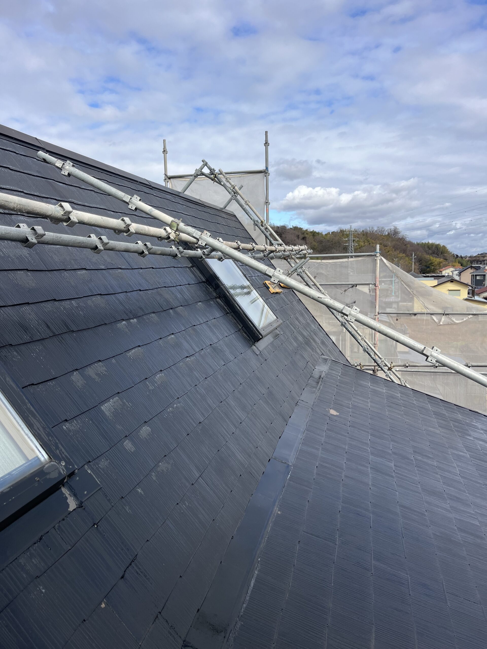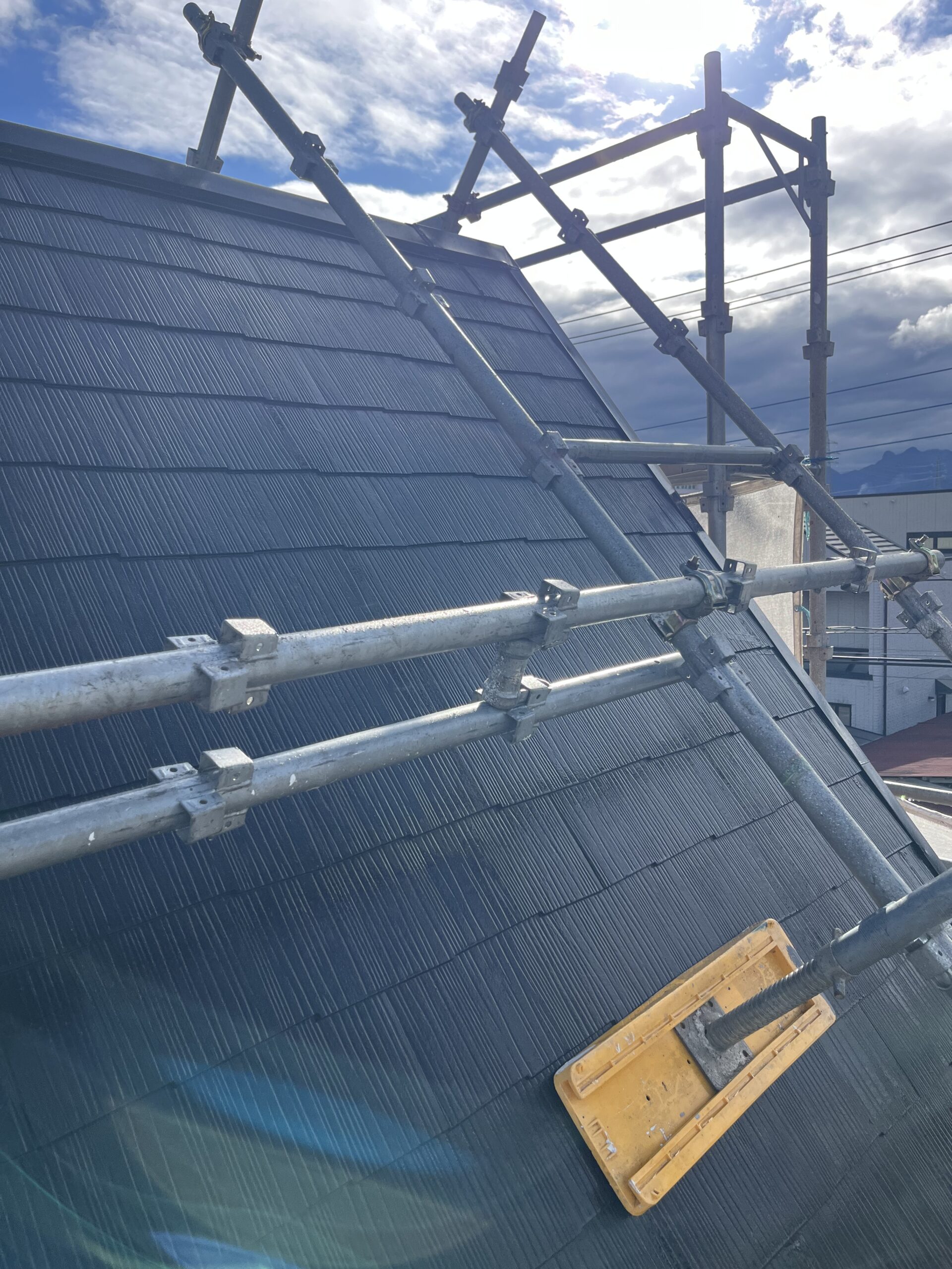 屋根の勾配がきついため今回は屋根足場も組んでもらいました❗️